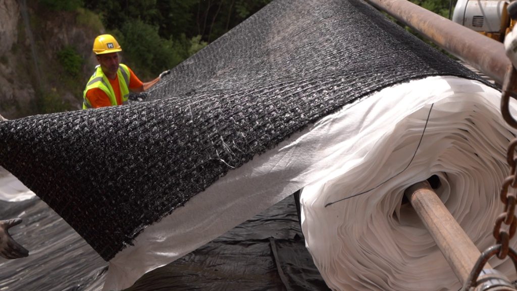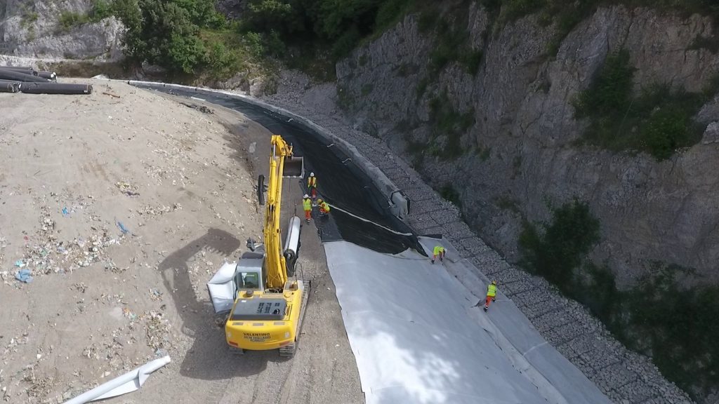 From a regulatory point of view, the operational reference remains the closure stratigraphy indicated by the regulations: traditionally, 50 cm of gravel for biogas management, 50 cm of clay for waterproofing, an additional drainage layer to intercept infiltrations and one metre of topsoil to promote renaturalisation. Performance equivalence has made it possible to replace the natural layers with dedicated geosynthetics: a draining geocomposite for biogas, a bentonite GCL for waterproofing and, on the slopes, a multicomposite that integrates drainage and three-dimensional reinforcement. This integration reduces the number of layers, improves overall stability and simplifies the construction phases, with both technical and operational advantages (faster installation, fewer steps and greater controllability of the installation; more technical details available here). In projects of this type, the boundary between natural and artificial dissolves: controlled renaturalisation is not “original nature”, but neither is it simply “concrete”. It is augmented and engineered nature, which requires care, operation and management.