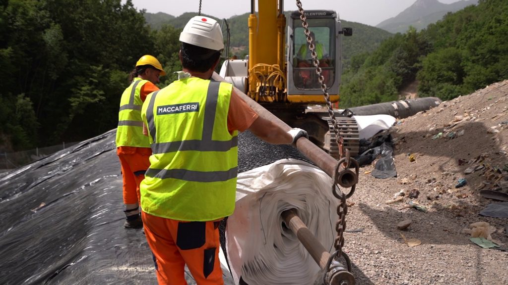 Maccaferri’s adoption of the ‘Geosynthetic Multicomposite’ was the result of a technical process aimed at simultaneously resolving the various critical issues at the landfill site. The system made it possible to rebuild a stable slope structure, ensure the waterproofing of the surface layers and guarantee proper water management. The intervention was carried out in stages: risk analysis, definition of the volumes to be contained, reprofiling of the waste according to the project slopes, installation of geosynthetics and preparation of the surface for morphological and landscape recovery.