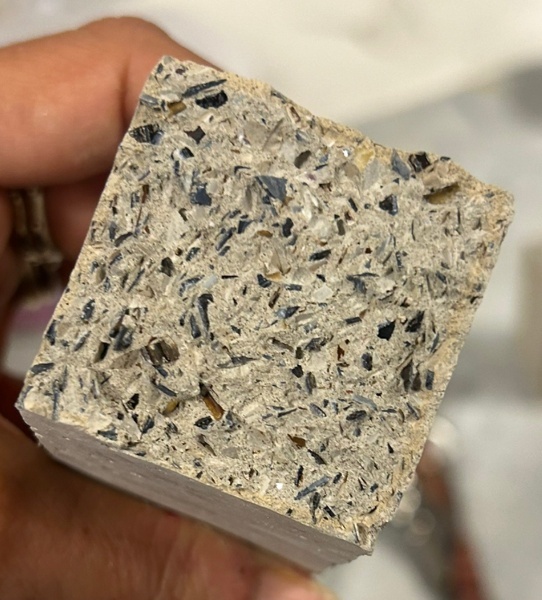 The first GREENLIFE4SEAS prototypes: mixtures of sediments, mussel-shell powder and aggregates, and cement.